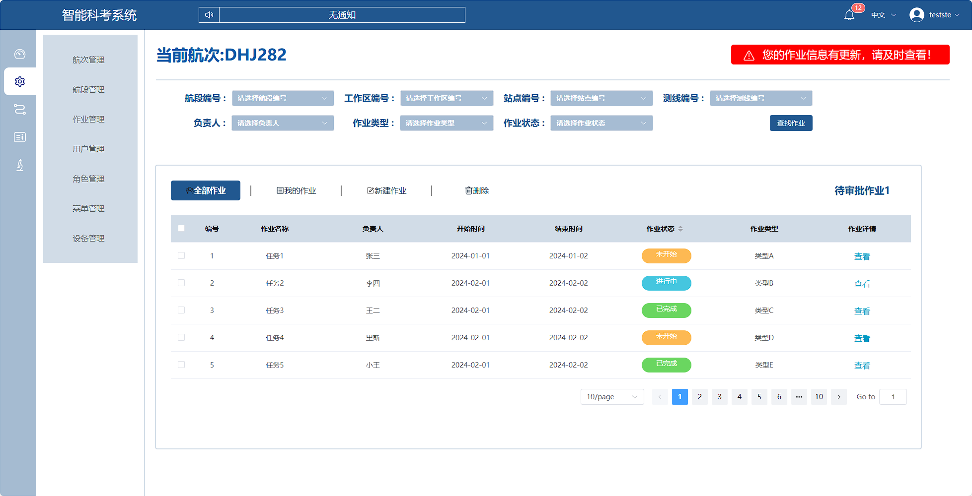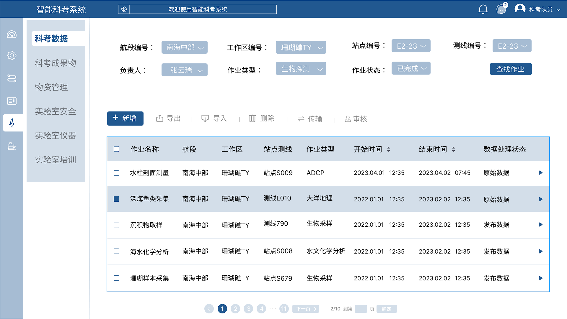 作业管理: 根据科考任务需求,对各项作业进行计划、分配、跟踪和管理,提高作业效率和管理水平;
