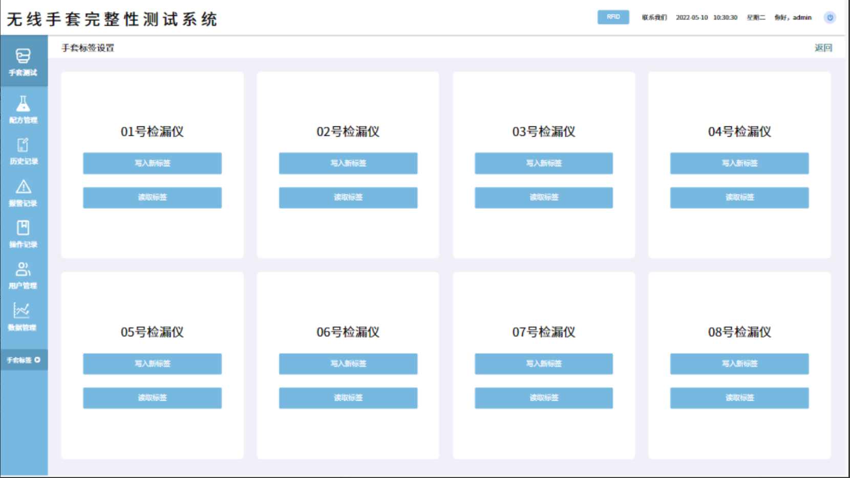 测试界面:对不同设备进行检测流程控制,并得出最终结果;