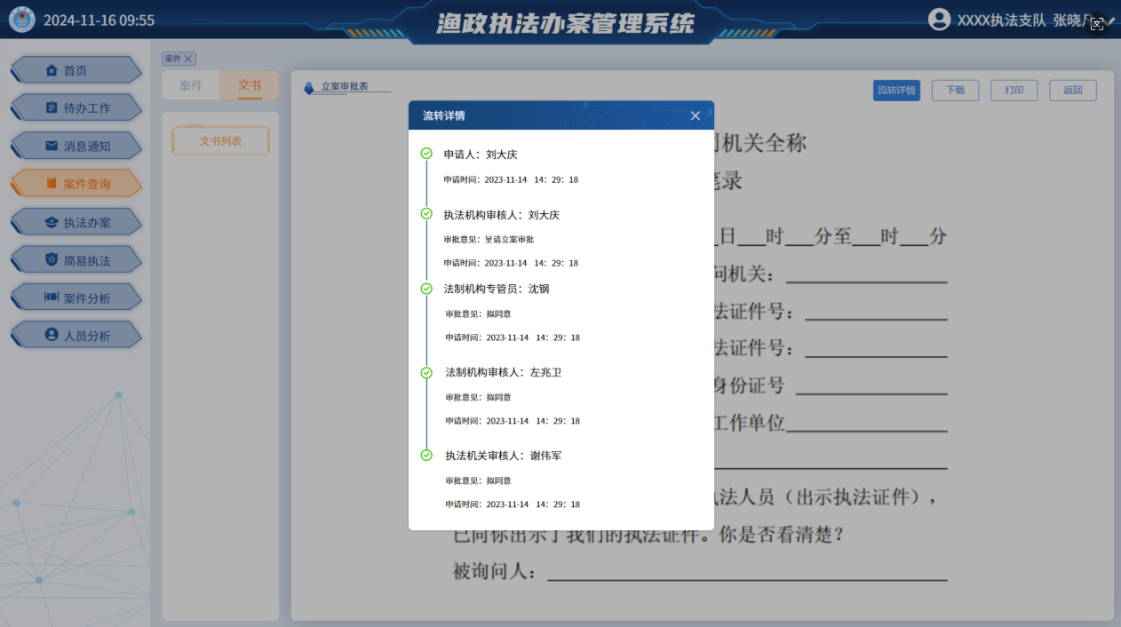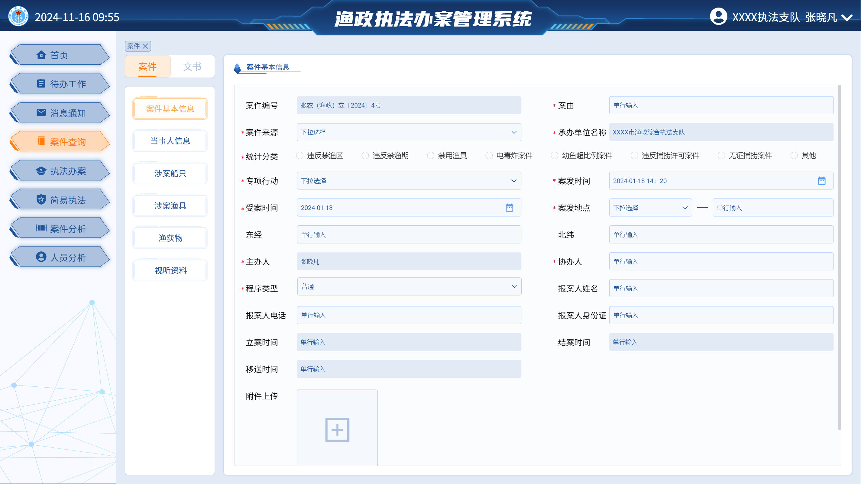 - 案件信息录入与管理,实现对非法捕捞等行为的快速登记;