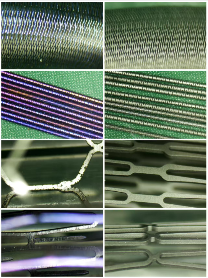 在RDN手术中,支架或导管需经由血管到达肾动脉,其表面质量直接关系到血液相容性、推送顺畅性以及神经消融的有效性。传统的支架制造工艺(如激光切割)往往会在表面留下熔渣、氧化层及脉冲纹。这些微观缺陷不仅会增加支架与血管壁的摩擦损伤风险,还可能成为血栓形成的诱因。因此,如何高效、均匀地去除这些表面缺陷,并形成利于涂层附着的微观结构,成为RDN支架制造中的关键技术点。