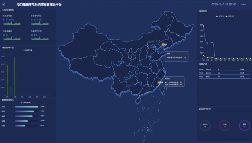 - 报表管理:提供报表管理、连船记录、岸电使用率分析,支撑运营数据统计与分析。