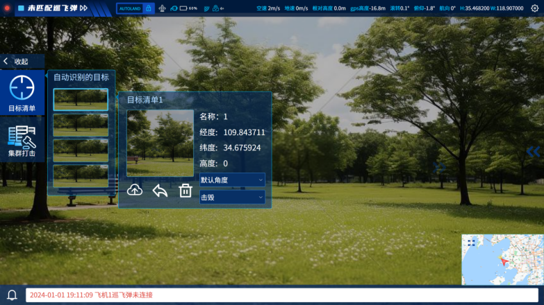 巡飞弹打击任务的核心执行环节,通过 AI 自动识别目标并生成清单,大幅提升战场目标发现与打击效率,支持多机集群协同打击,适配复杂战场环境下的快速响应需求。