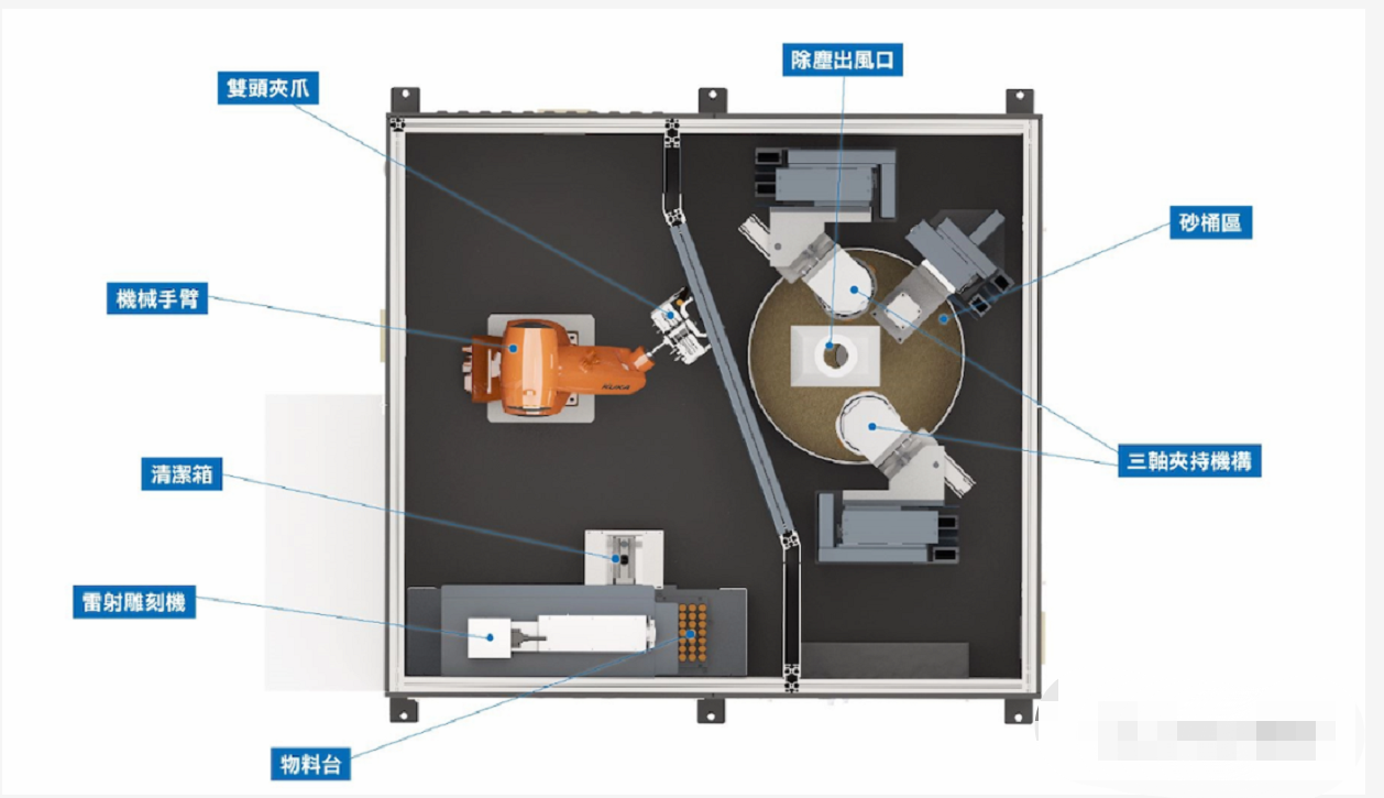 钝化抛光区域与上料区域自动分隔,配备清洁控制系统。将刀具托盘置于设备内,实现自动化处理。