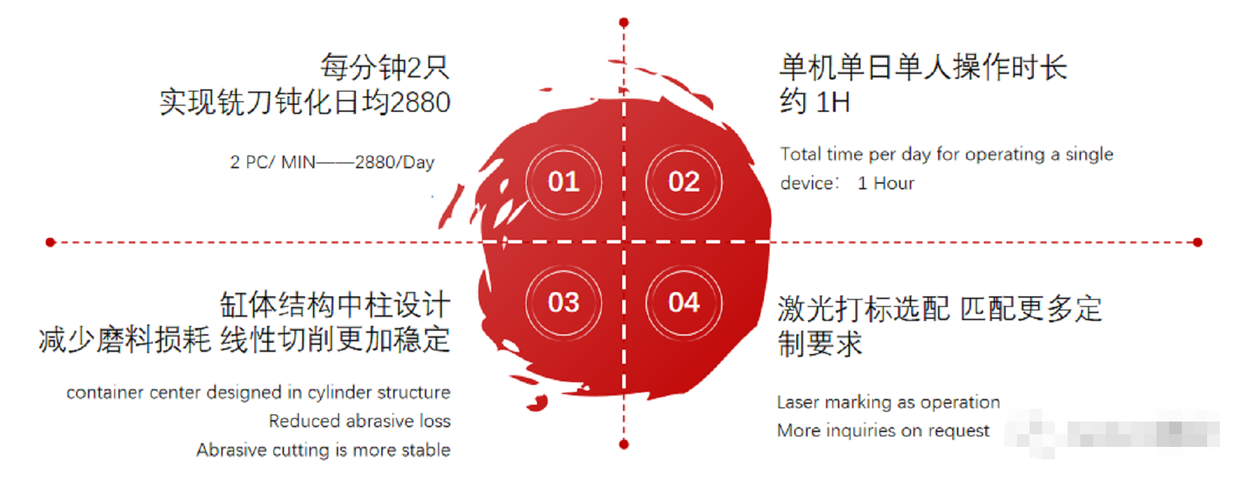 1. 设备有安全性控制,因此可以避免因产品掉落产生的批量刀具报废,磨料报废 每年减少损失 按照 1-2万人民币计算
