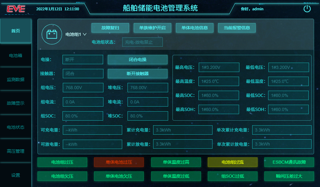 项目背景:船舶级储能电池管理系统,根据储能电池相匹配与协调,采用分层的拓扑配置,包含电池模组、电池簇和电池阵列的大容量储能系统采用三层架构的电池管理系统,对电池运行状态进行优化控制以及管理。